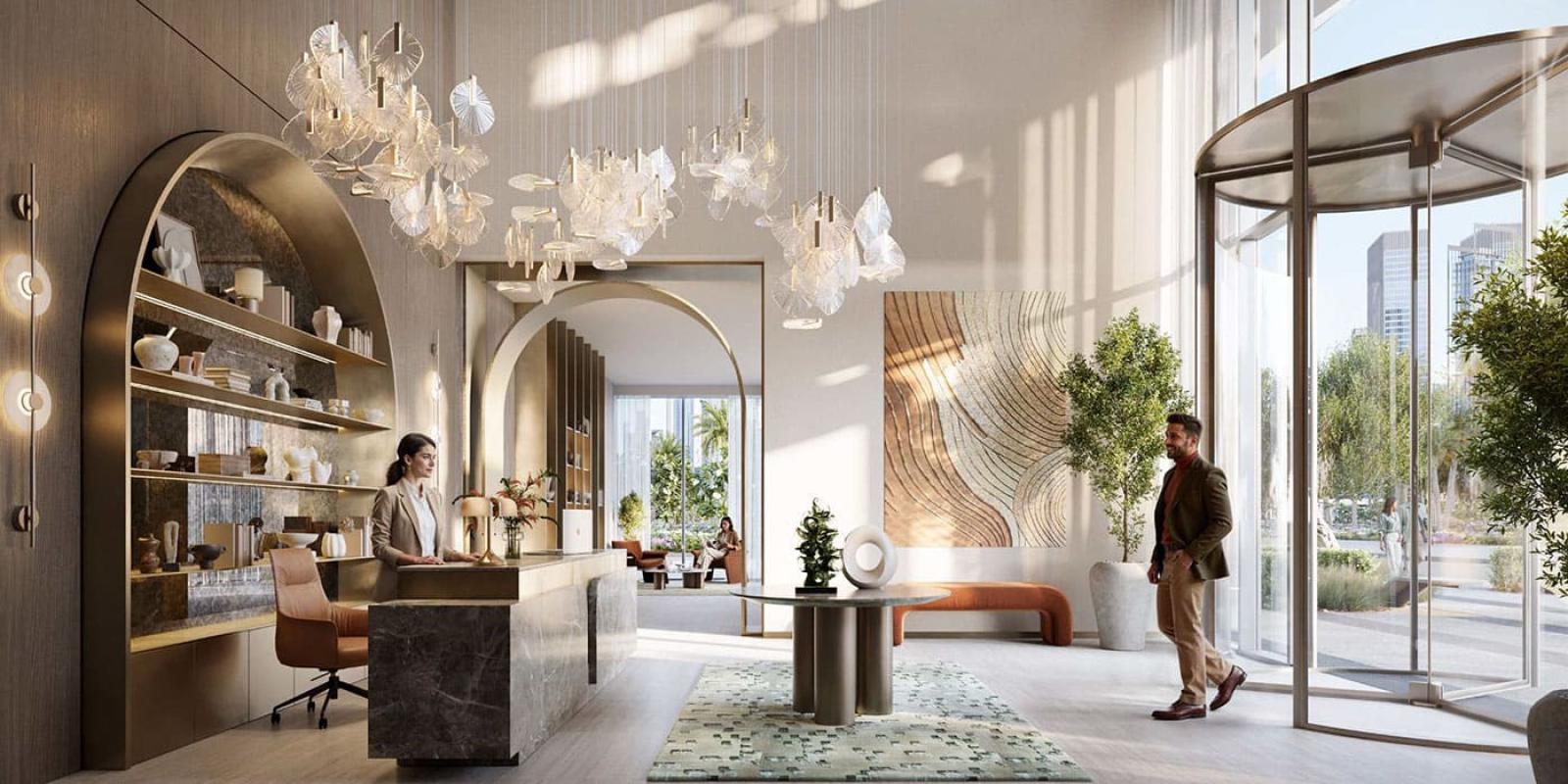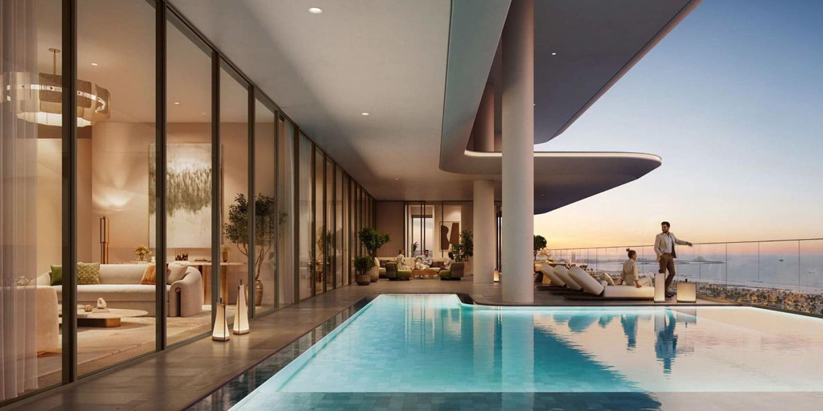The architecture reflects contemporary prestige — a shimmering glass façade sculpted with clean lines, deep balconies, and a vertical silhouette that captures the rhythm of the urban skyline. Inside, residences are crafted with sophisticated neutral palettes, warm tones, and polished finishes that evoke a calm hotel-style ambience. The floor-to-ceiling windows keep every home naturally bright while connecting residents to the dynamic energy of Business Bay below. Each apartment has been thoughtfully planned to combine modern fluidity with the exclusive design language of Palace-branded living.