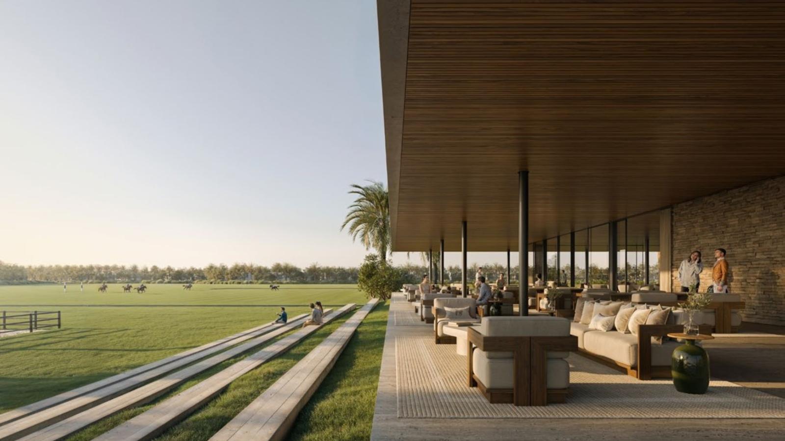Equiterra enjoys one of the most privileged locations within Grand Polo Club & Resort, positioned just steps away from the community’s Green Core. This expansive green zone anchors the lifestyle of the development with its picturesque polo fields, unique stables, and an architecturally iconic clubhouse. The clubhouse offers a beautifully crafted Arabian-inspired terrace that overlooks three professional polo fields, creating a spectacular setting for gatherings, leisure, and sporting events. The spiraling stables form a landmark architectural statement, designed around a landscaped courtyard that embraces water features, palm-lined pathways, and tranquil garden elements.
