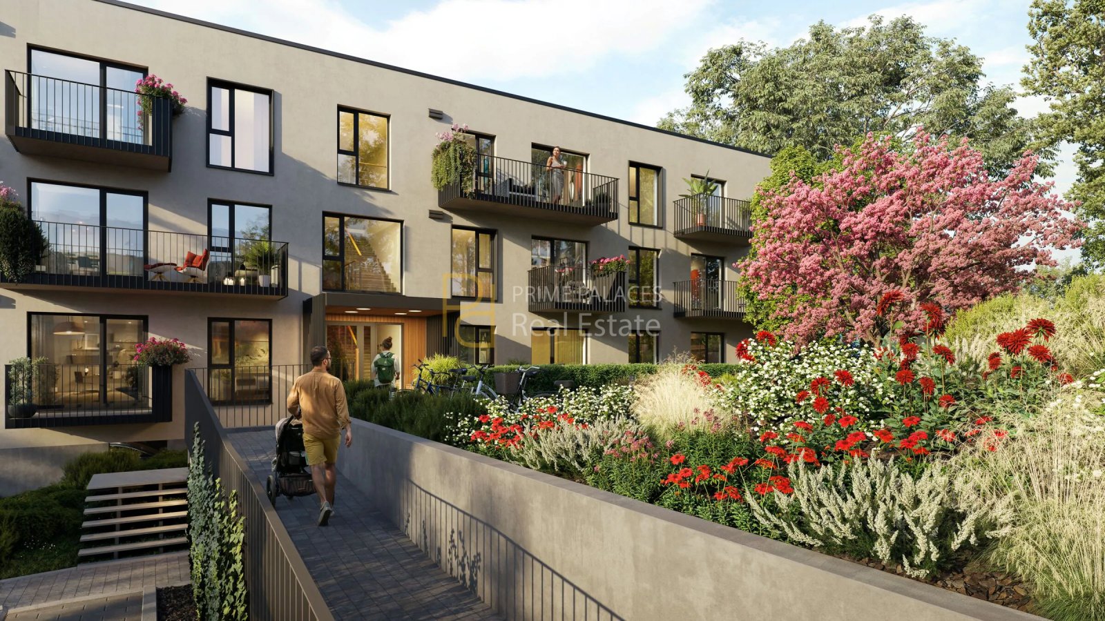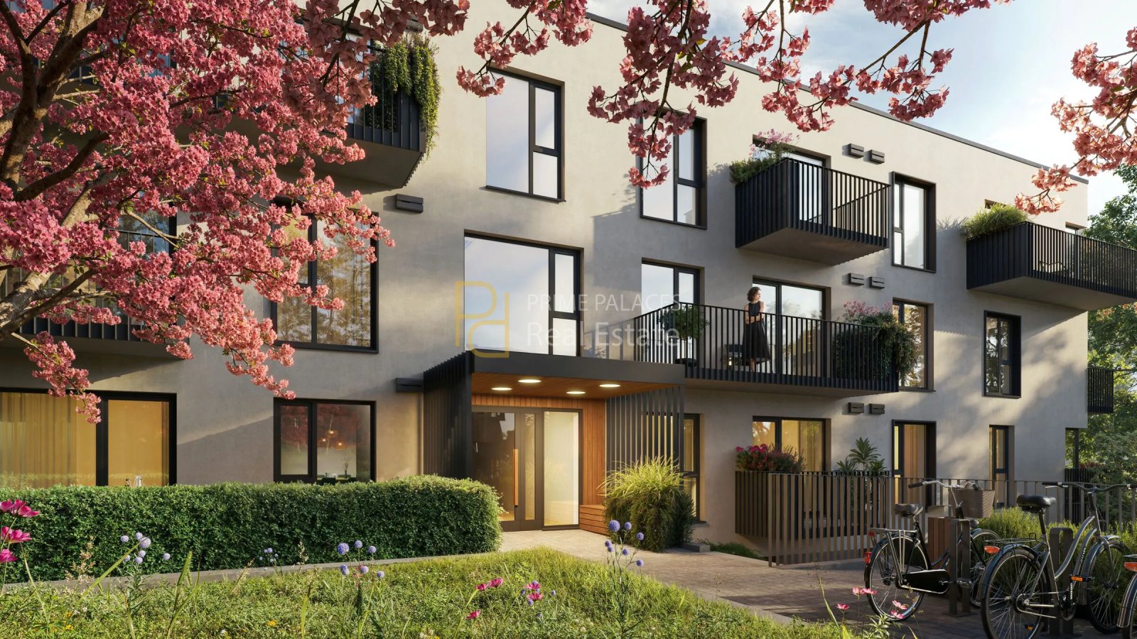 From an infrastructure perspective, the project includes underground parking as well as additional outdoor parking options. Dedicated storage areas for bicycles and strollers are integrated into the development, alongside bicycle stands within the territory. Waste sorting facilities are also included, reflecting a broader sustainability-oriented approach consistent with the developer’s positioning.