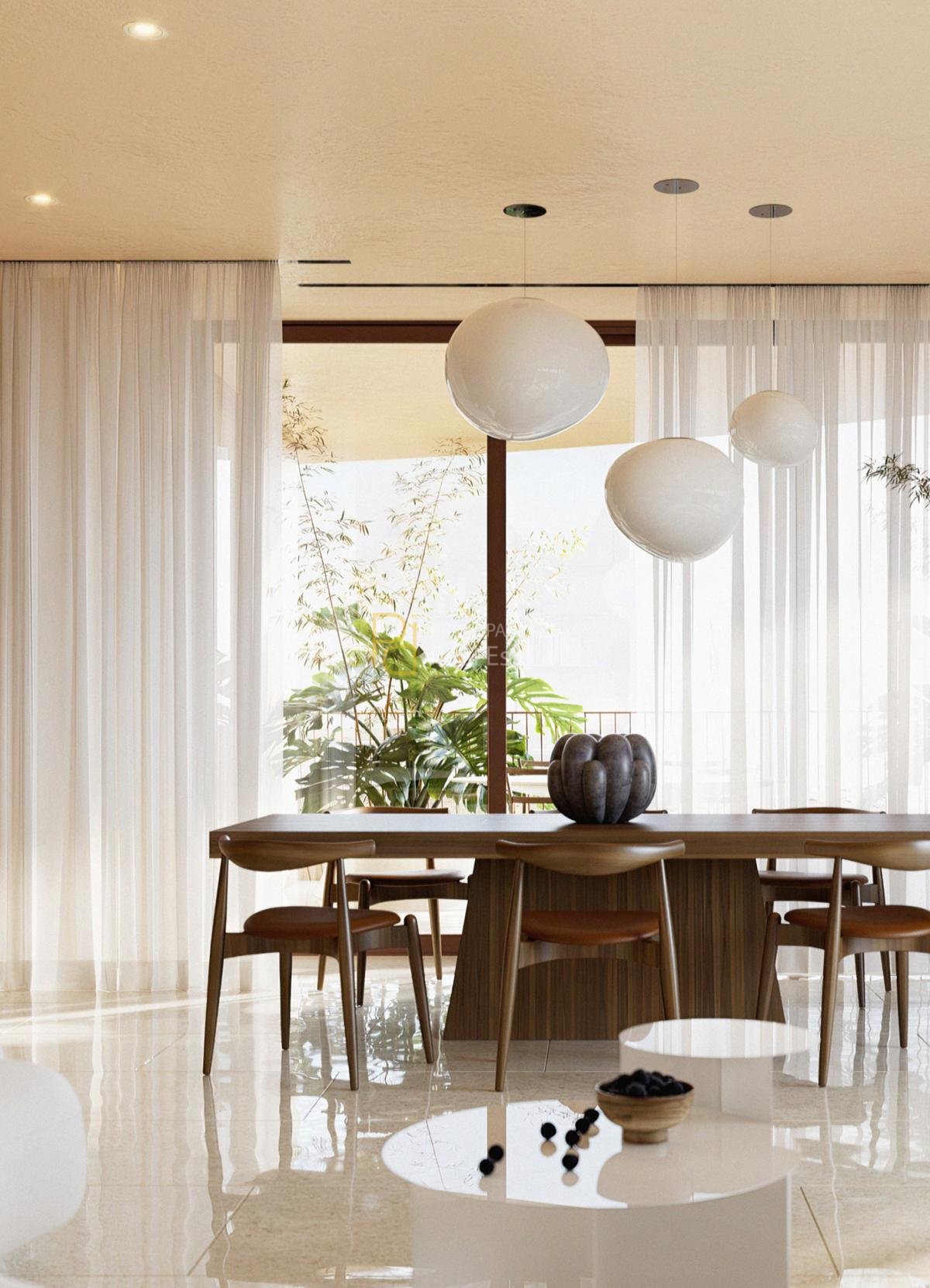 The project consists of nine architecturally distinctive buildings designed by 314 Architecture Studio, characterized by curved forms and Mediterranean-inspired design elements. The development includes 79 residential units, offering a mix of 1 to 4-bedroom apartments, with layouts structured to maximize natural light, outdoor living, and spatial continuity. Residences are designed with open-plan living and dining areas, large sliding glass openings, and continuous terraces, creating a seamless transition between interior and exterior spaces. Ground-floor units feature private gardens, while penthouses incorporate elevated terraces with integrated jacuzzi features, reinforcing the project’s positioning within the upper-tier residential segment.