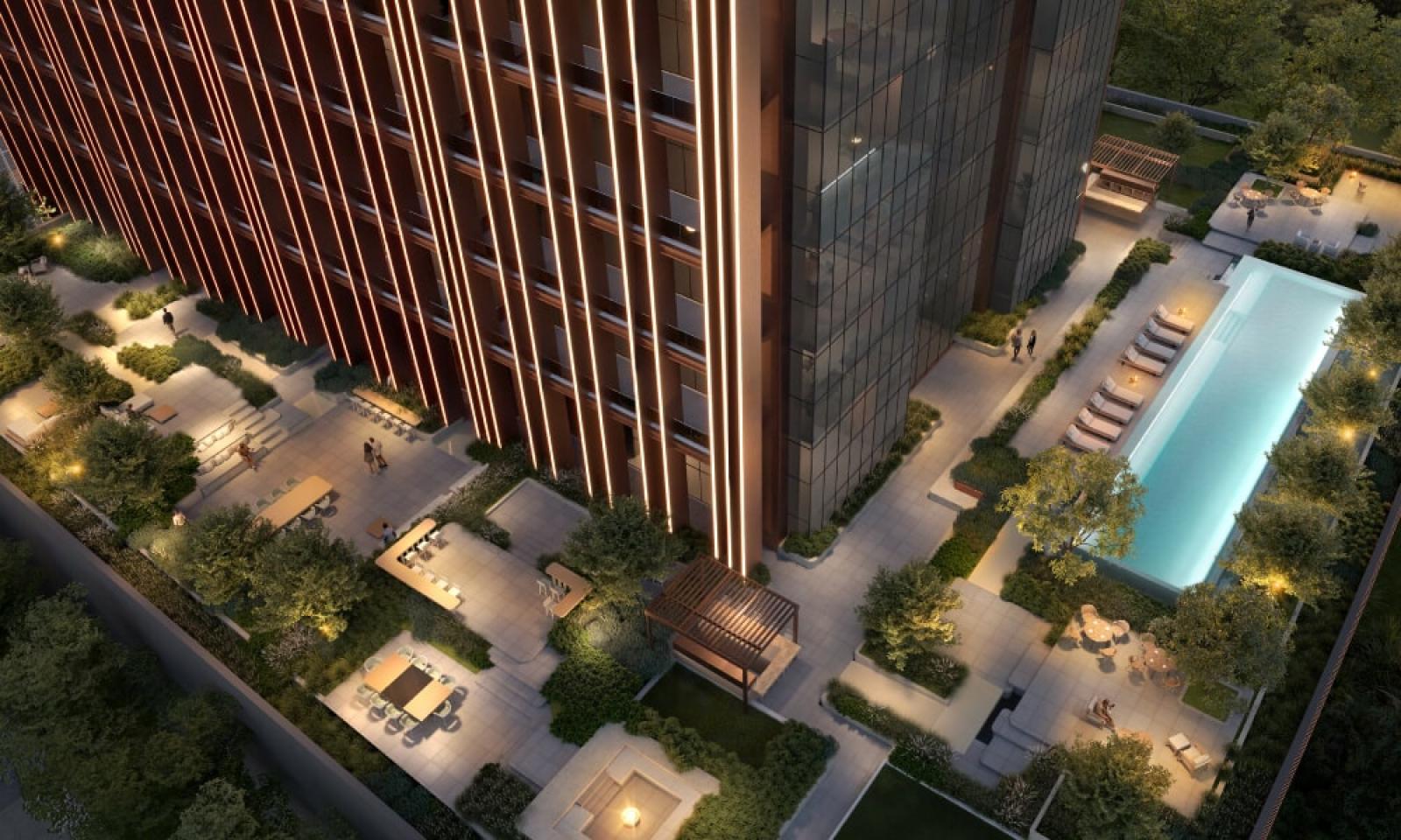 The modern façade — sleek, commanding, and defined by confident architectural lines — embodies progress and prestige. The double-height grand lobby welcomes guests into a world where success feels tangible, while the rooftop executive lounge and landscaped terraces elevate the business experience to a new level of sophistication.