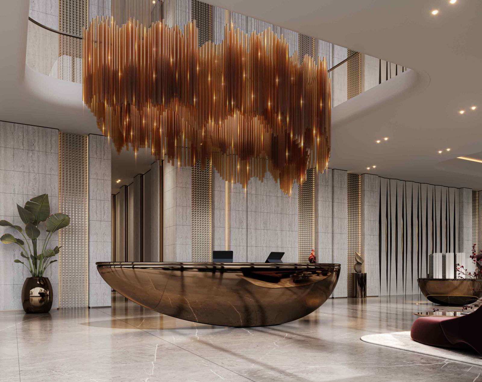The façade celebrates contemporary elegance, featuring fluid balconies, a reflective glass exterior, and contours that capture the sunlight and panoramic views of Meydan’s evolving skyline. The moment residents step into the lobby, they are welcomed by double-height ceilings, premium textures, elegant lighting, and a serene ambience that sets the tone for refined living. Inside every residence, grand windows frame beautiful natural vistas, while the open-plan kitchen, dining zones, and furnished bedrooms form inviting spaces where comfort meets sophistication. Balconies extend the living areas to the horizon, creating a seamless connection to stillness and skyline views.