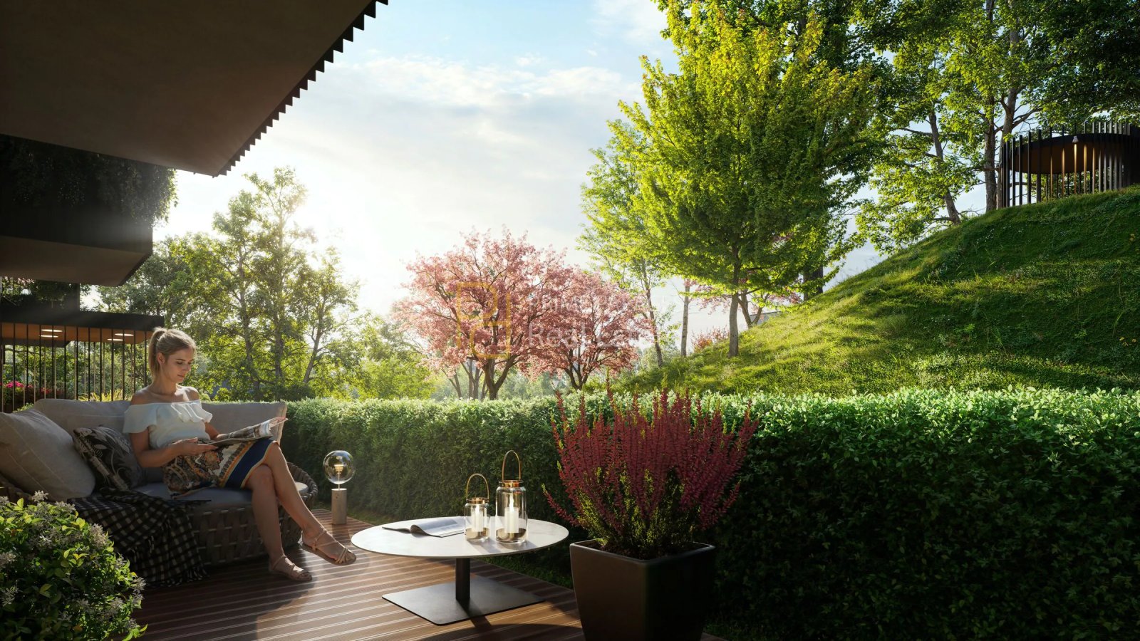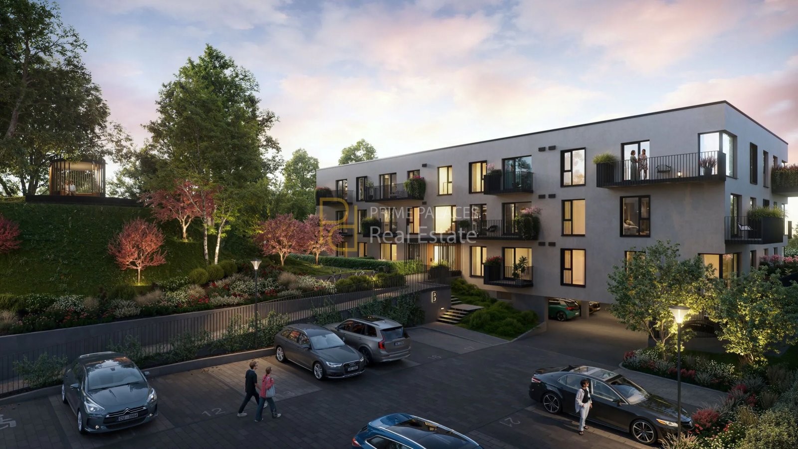 From an infrastructure perspective, the project includes underground parking as well as additional outdoor parking options. Dedicated storage areas for bicycles and strollers are integrated into the development, alongside bicycle stands within the territory. Waste sorting facilities are also included, reflecting a broader sustainability-oriented approach consistent with the developer’s positioning.