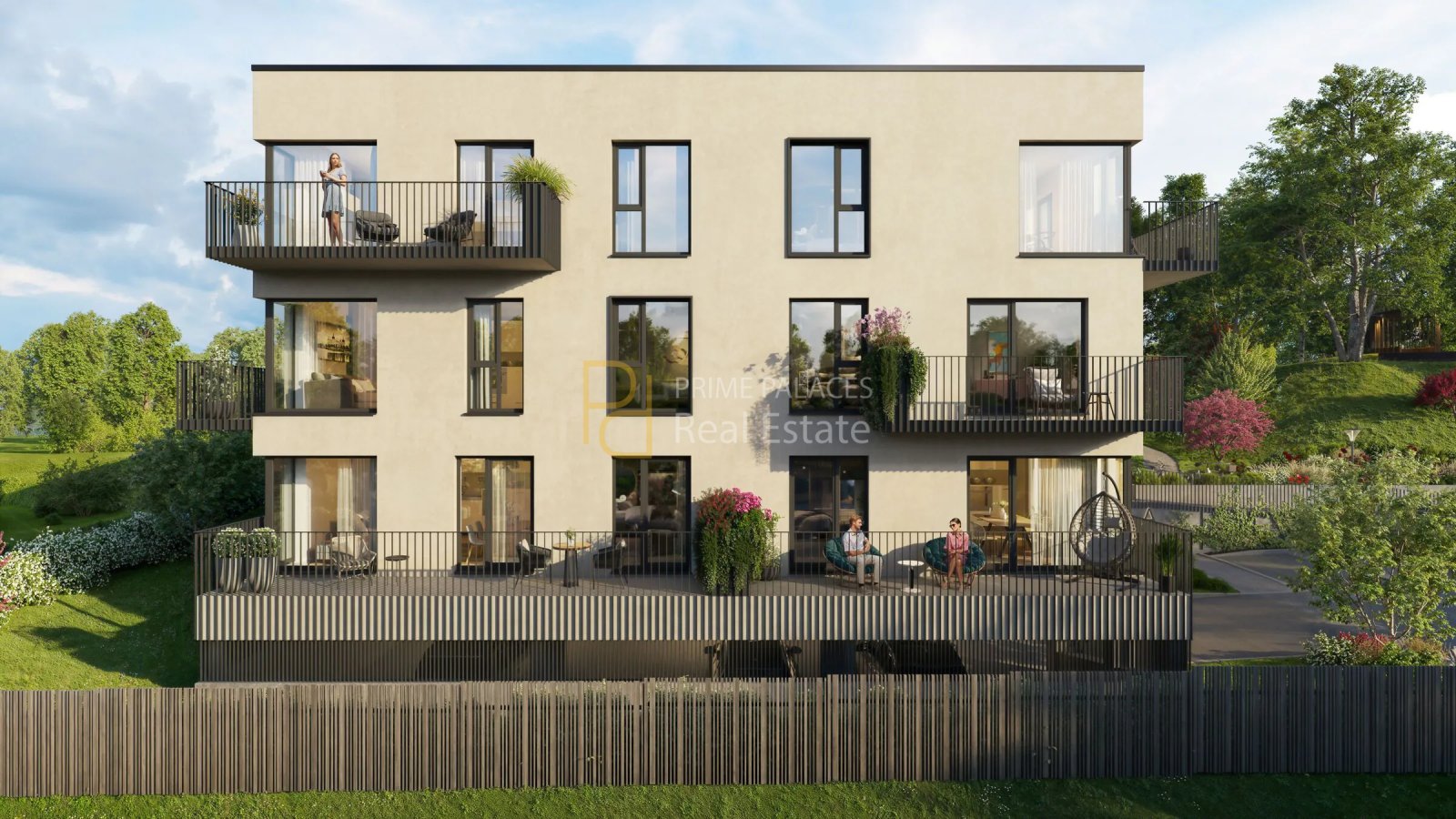 The project consists of apartments with 2 to 4 rooms, corresponding to one- to three-bedroom layouts. These units are designed to maximize usability and natural light, with both east- and west-facing orientations available. This allows residents to select units based on sunlight preference, which is a relevant factor in northern European climates. Apartments include outdoor extensions such as terraces and balconies, with integrated flower boxes that reinforce the connection between indoor and outdoor living.