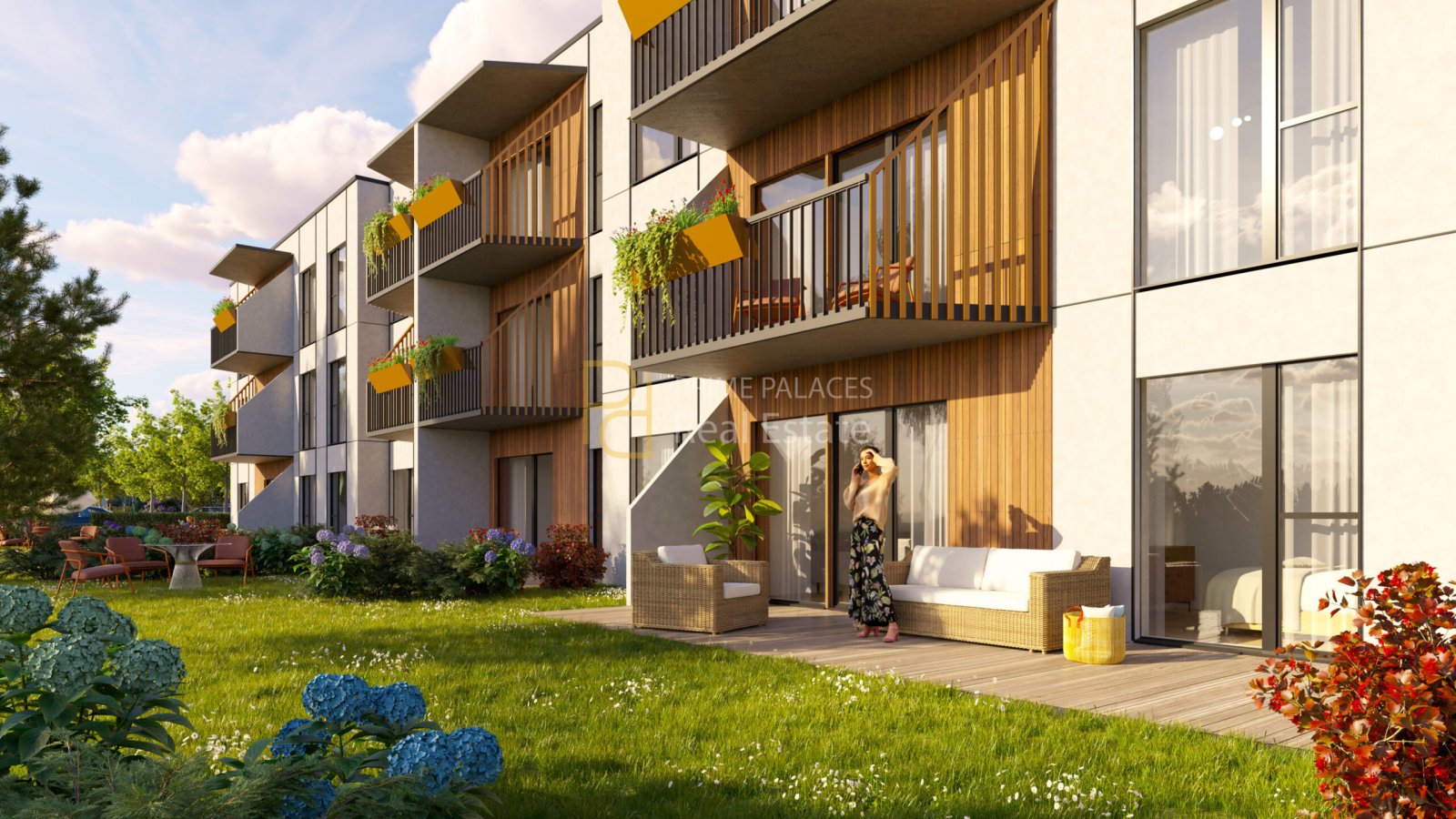 From a construction perspective, the project is designed with A energy class standards, indicating a focus on energy efficiency and long-term operational cost control. Interior specification packages, including “Earth,” “Sun,” and “Forest,” provide different material and design options. These packages include features such as veneer or natural parquet flooring, painted or veneer doors, and fully equipped bathrooms with brands such as Villeroy & Boch and Gustavsberg.