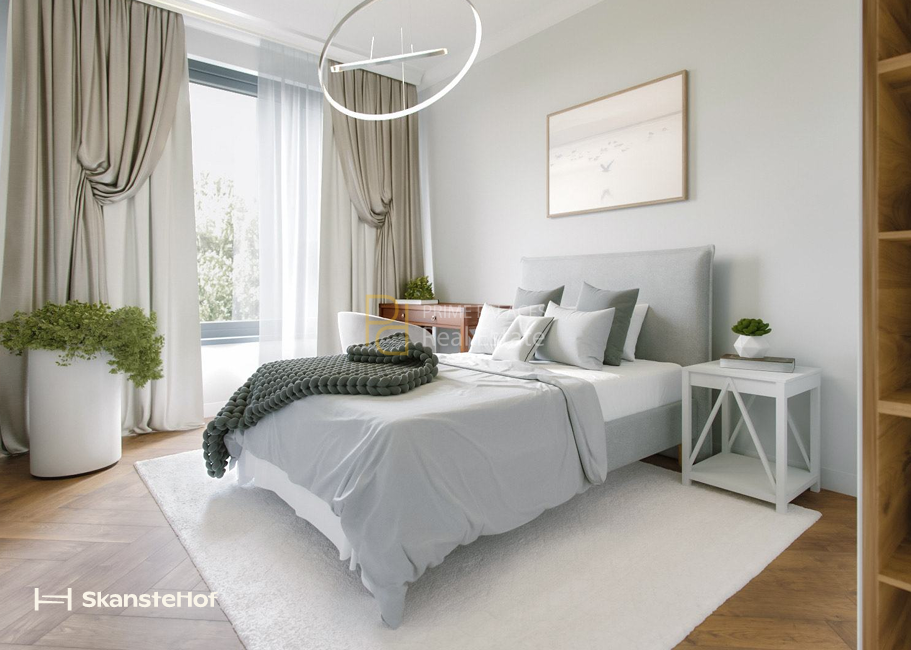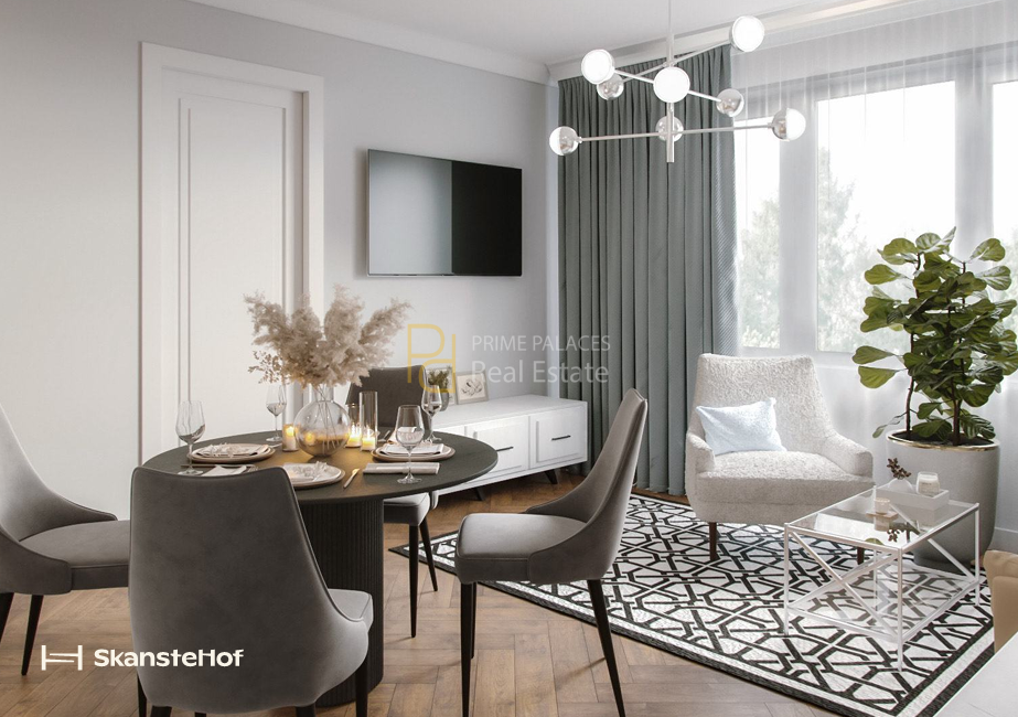 SkansteHof is designed as a fully finished residential building, where apartments are delivered with completed interior specifications. Based on available project information, units include quartz vinyl flooring with skirting boards, painted interior doors, triple-glazed windows, and installed electrical systems including switches and sockets. Bathrooms are equipped with built-in sanitary ware from Villeroy & Boch, with either shower systems or bathtubs, as well as underfloor heating. The inclusion of these features positions the project as a turnkey solution, reducing the need for additional post-purchase investment.