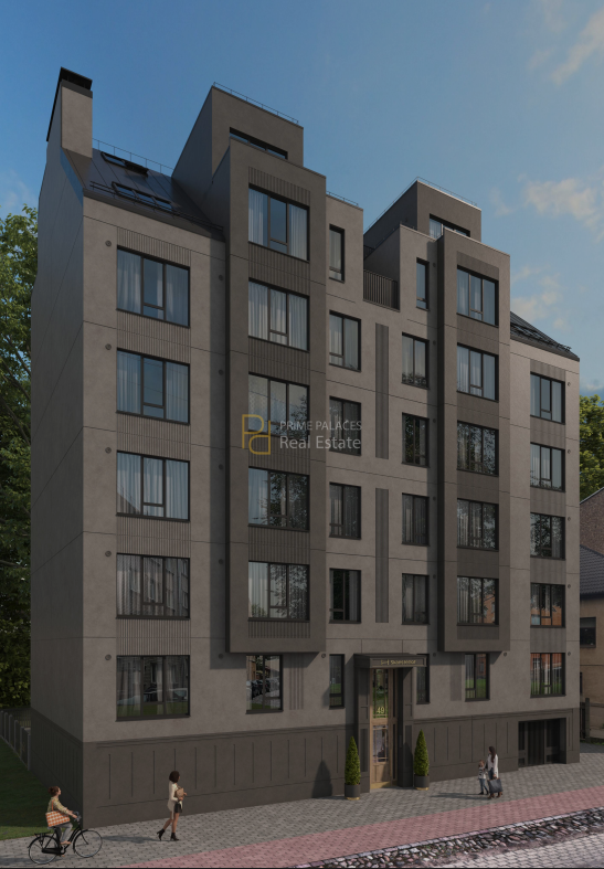 The building itself includes finished common areas, with stone tile flooring in staircases, fire-resistant entrance doors, and elevator systems provided by Schindler. These elements indicate a focus on durability and long-term usability rather than decorative or luxury-oriented design. The overall construction and finishing approach is consistent with mid- to upper-mid segment residential developments in Riga.